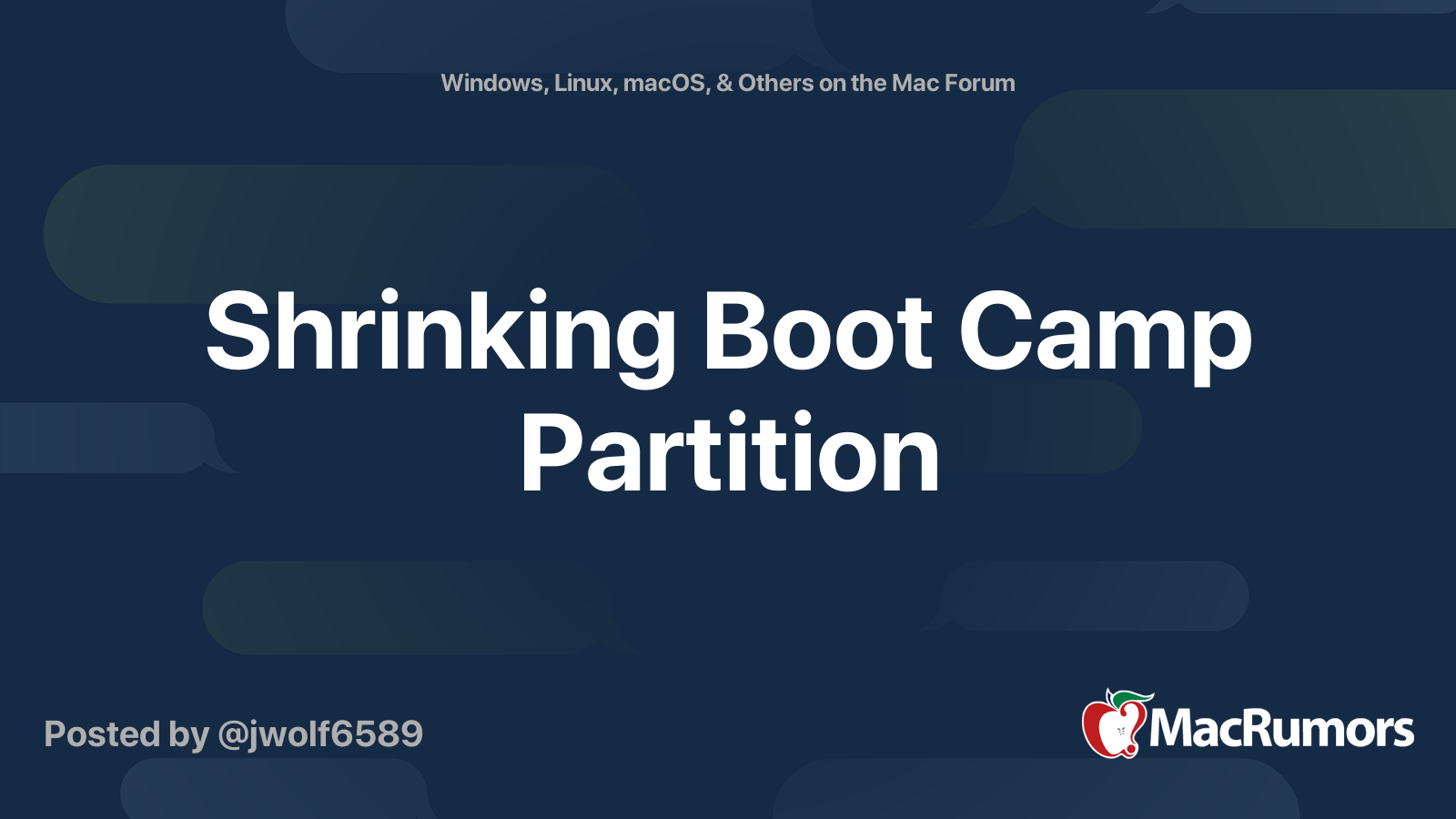 Shrinking Boot Camp Partition Macrumors Forums